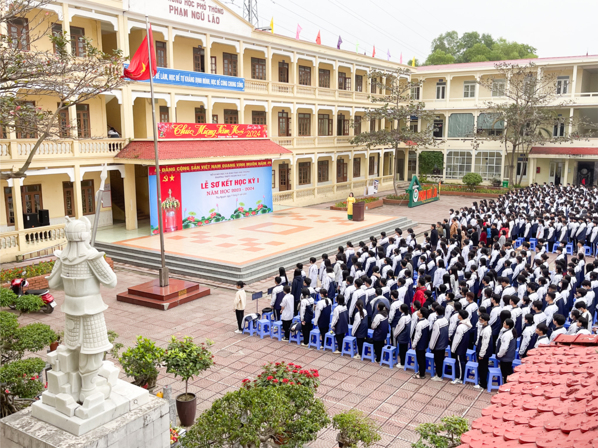 Trong không khí vui tươi của nhân dân cả nước chào mừng năm mới 2024, chiều ngày 11/01/2024, thầy và trò trường THPT Phạm Ngũ Lão tổ chức Lễ sơ kết học kì I, năm học 2023 - 2024. Lễ sơ kết nhằm đánh giá lại nửa chặng đường của một năm học mà thầy và trò nhà trường đã, đang và tiếp tục nỗ lực phấn đấu, thực hiện tốt các nhiệm vụ trọng tâm của năm học.