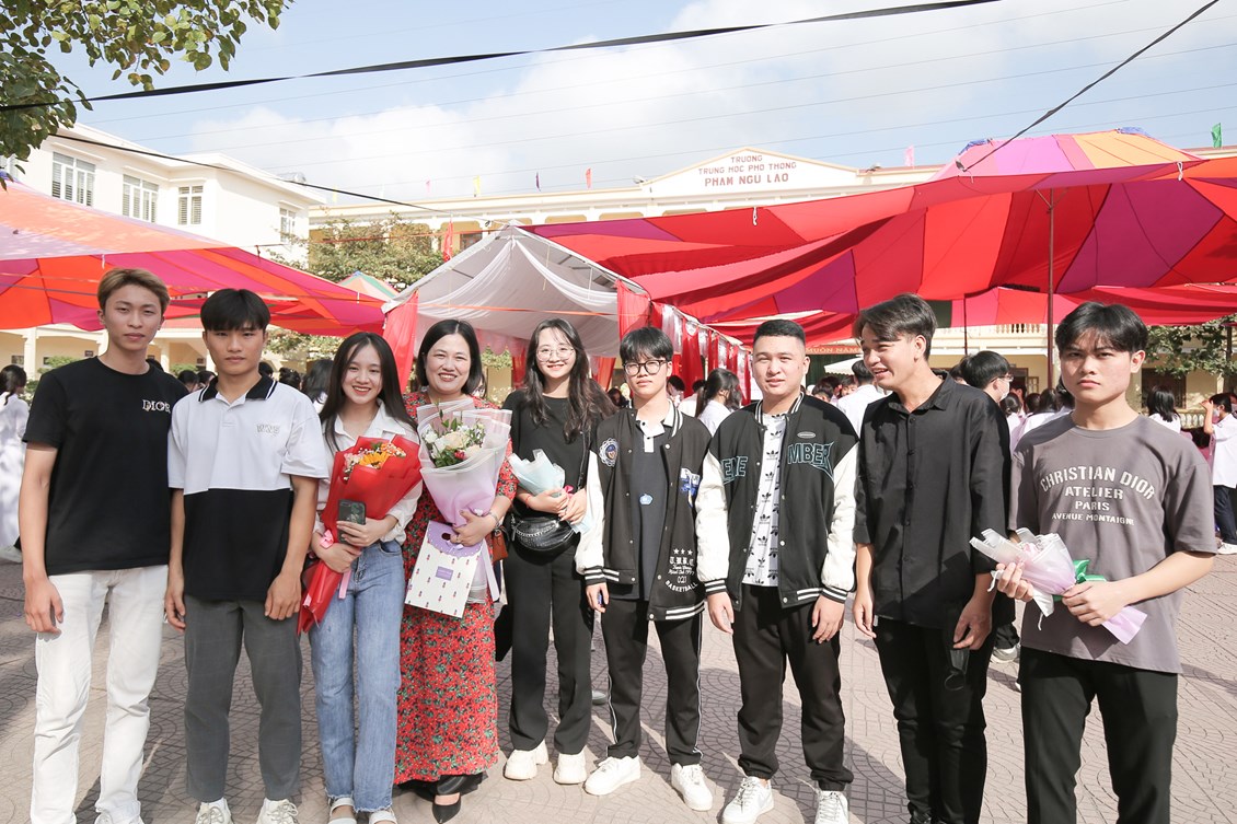 Em Đỗ Hải Anh HS lớp 12A1, đại diện cho HS toàn trường tặng hoa tri ân các thầy cô nhân ngày nhà giáo Việt Nam 20/11.